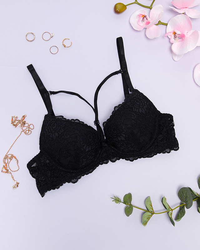 Чорний мереживний бюстгальтер з бретелями - Нижня білизна
