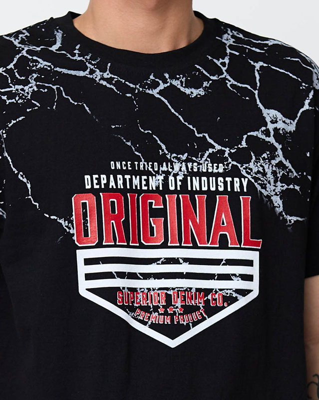 - Класична чоловіча футболка з матеріалу з високим вмістом бавовни. Модель з коротким рукавом і круглим вирізом. Передня частина футболки прикрашена принтом. ПРИМІТКА: Точність вимірювання (+/-) 1 см.