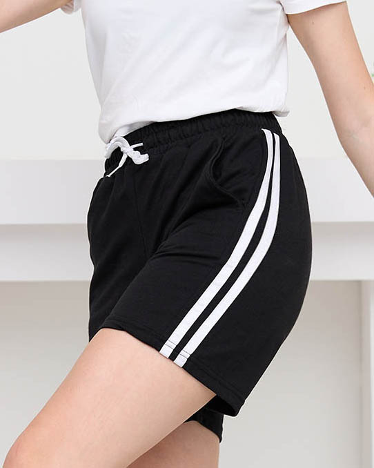 - Спортивні та дуже зручні шорти в смужку, прикрашені смужками. Модель має широку гумку та зав’язані шнурки на талії. Ідеально підходить для активного проведення часу! ПРИМІТКА: точність вимірювання (+/-) 1 см.