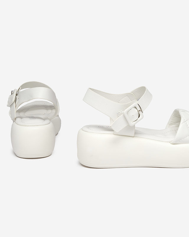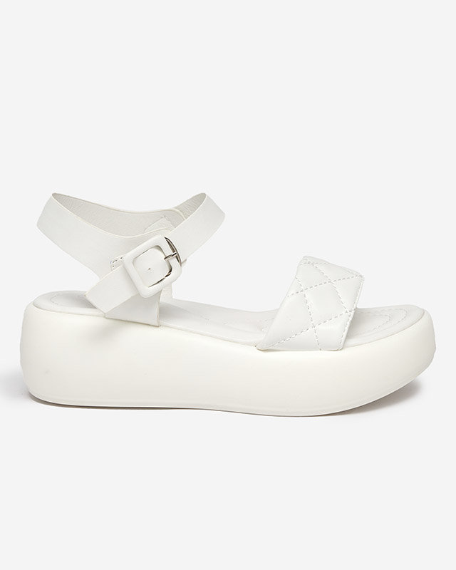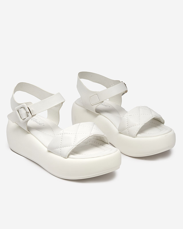 Жіночі стьобані сандалі на танкетці з екошкіри білого кольору Baloui. Взуття