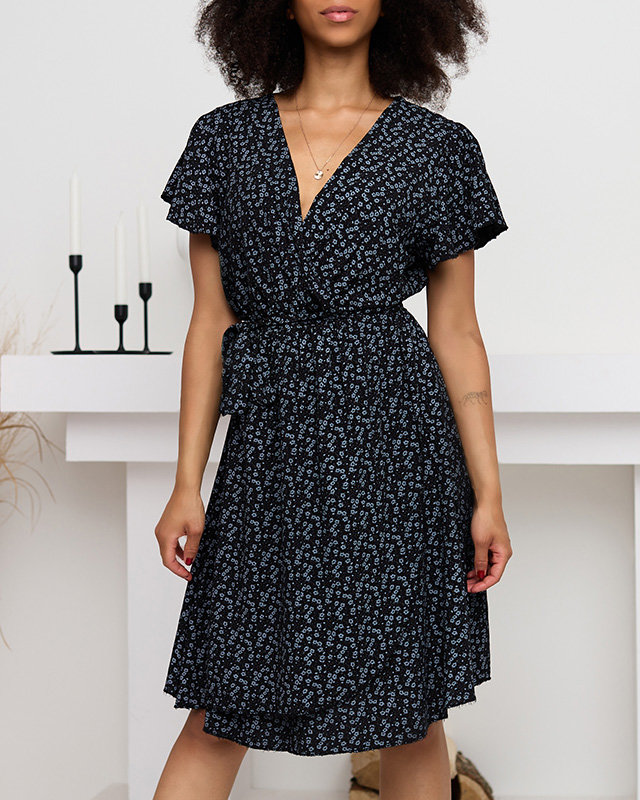 - Ідеальне жіноче коротке плаття з віскозної тканини з квітами. Модель з вирізом на конверті, короткими рукавами та краваткою, що підкреслює талію. Ідеально підходить для створення модних літніх нарядів! ПРИМІТКА: Точність вимірювання (+/-) 1 см.