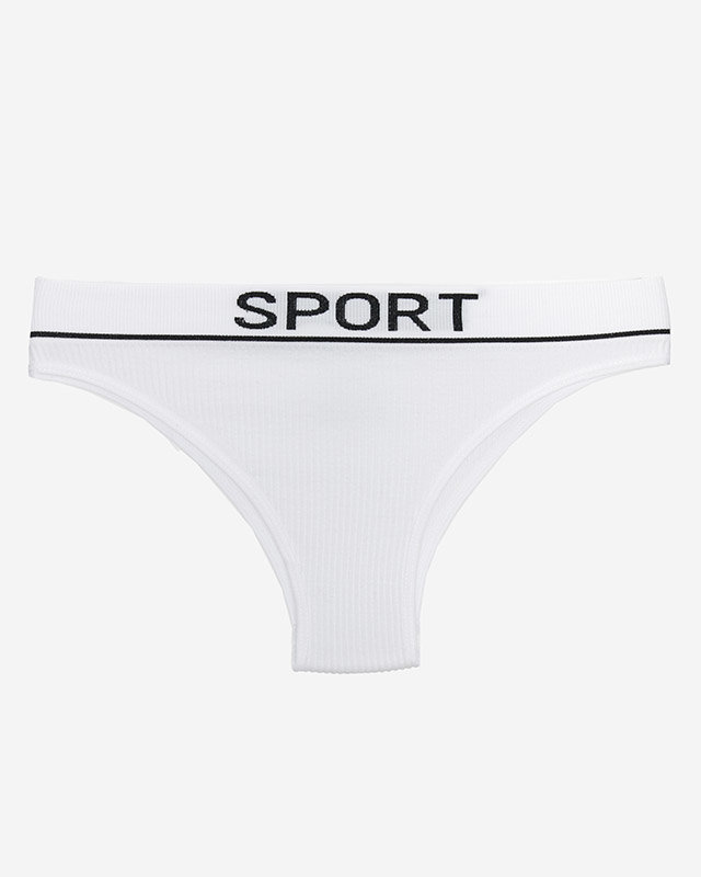 Жіночі білі трусики в рубчик зі спортивними написами - Нижня білизна
