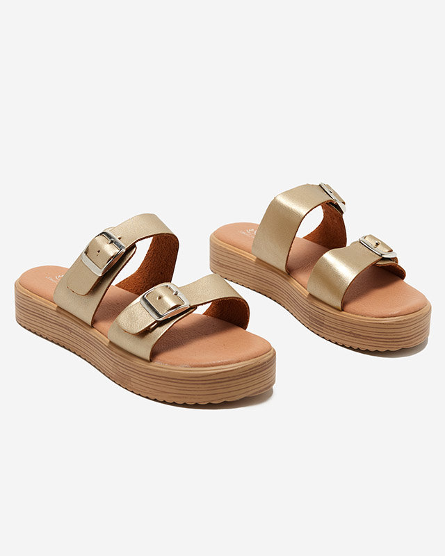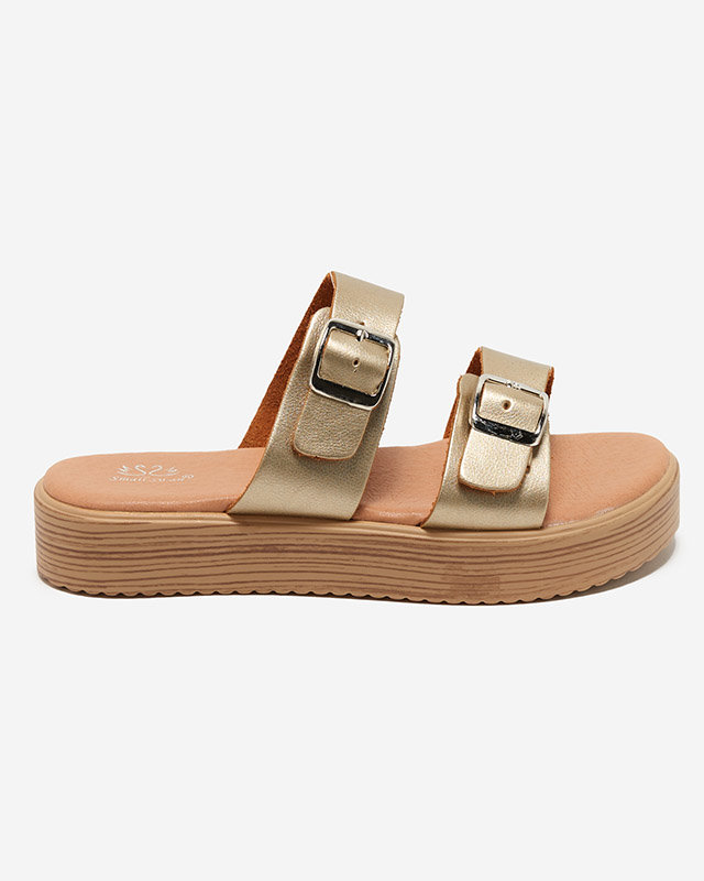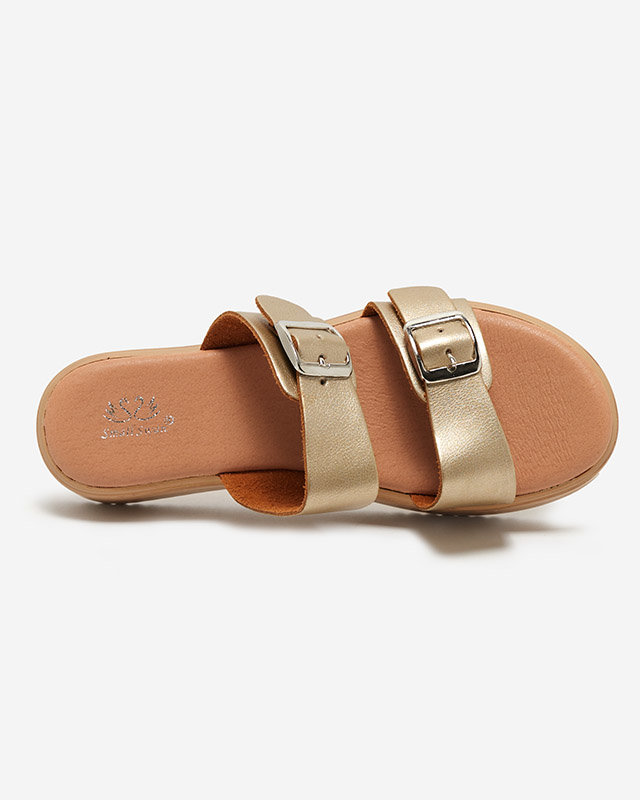 Золоті жіночі тапочки з екошкіри з пряжками Nepise - Взуття
