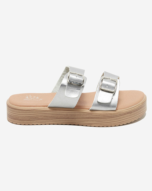 Срібні жіночі тапочки з екошкіри з пряжками Nepise - Взуття