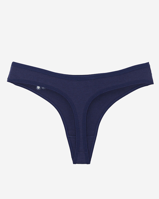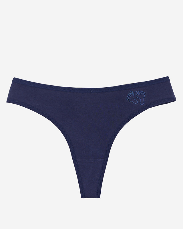 Жіночі темно-сині бавовняні стрінги з вишивкою - Нижня білизна