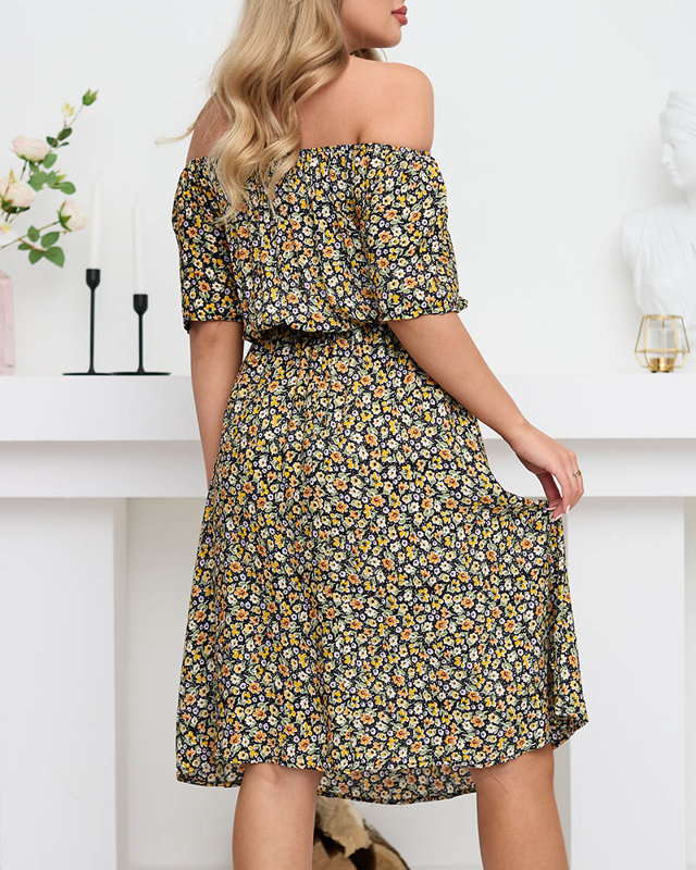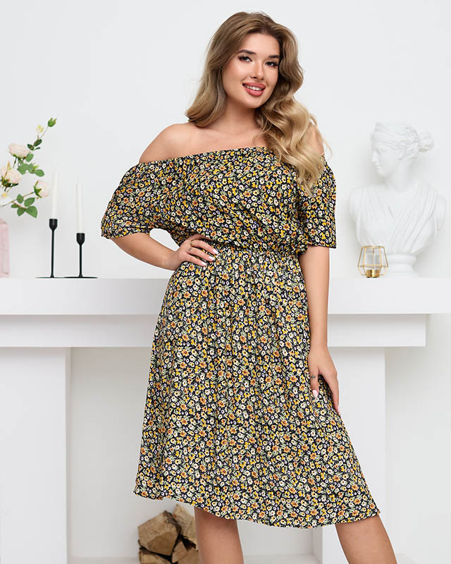 - Ніжне жіноче коротке плаття з квітами, виготовлене з віскозної тканини. Модель з іспанським декольте з гумкою на руках і талії. Ідеально підходить для відпочинку! ПРИМІТКА: Точність вимірювання (+/-) 1 см.