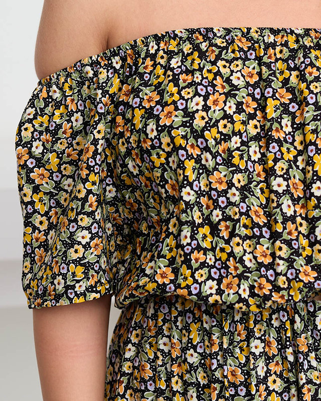 Жіноча чорна коротка літня сукня з різнокольоровими квітами - Одяг