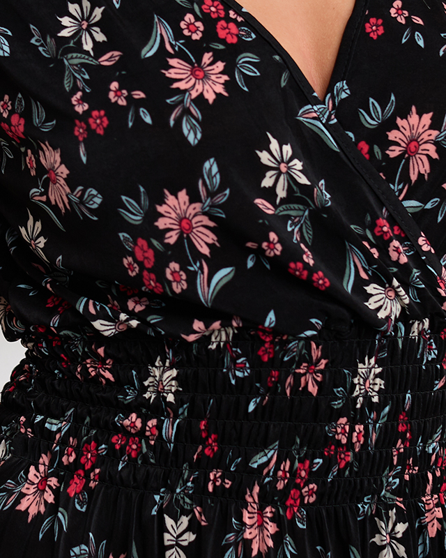 Чорна коротка сукня з квітковим мотивом - Одяг