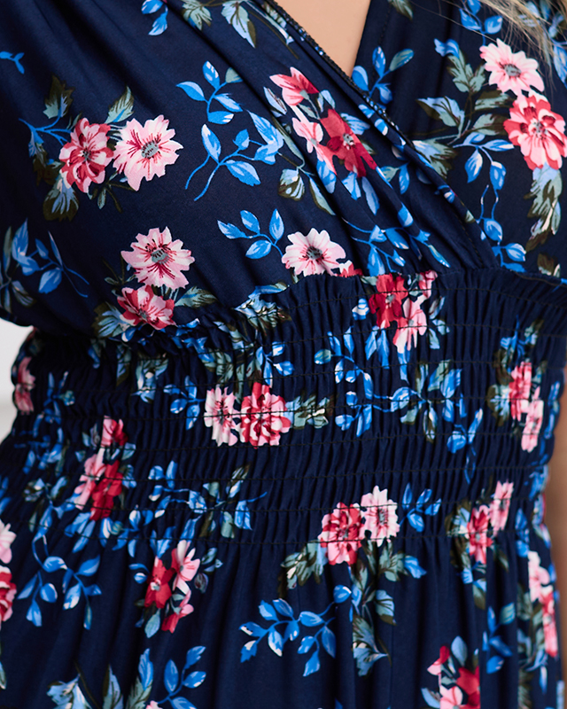 Довге темно-синє жіноче плаття з квітами - Одяг