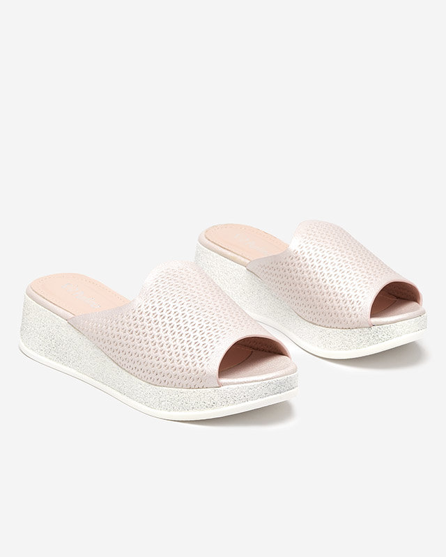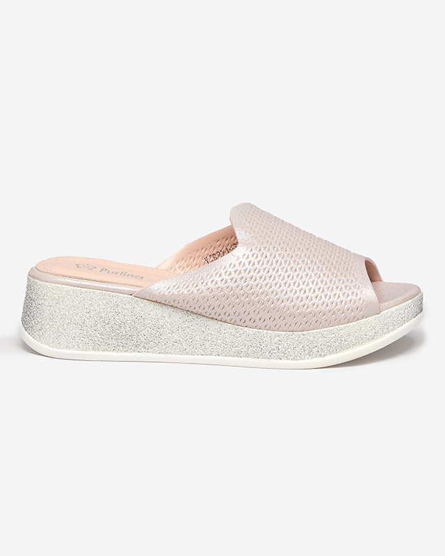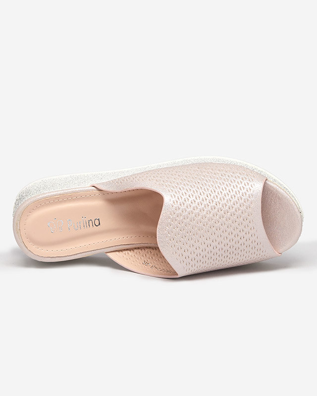 Lekisa рожеві жіночі ажурні тапочки на танкетці з блиском - Туфлі