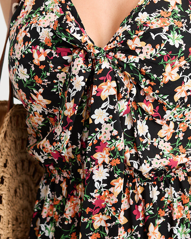 - Жіноча квітчаста довга сукня з легкого, повітряного матеріалу. Модель має виріз горловини, регульовані бретелі та декоративний бант спереду. Чудовий варіант для літньої спеки! ПРИМІТКА: Похибка вимірювання (+/-) 1 см.