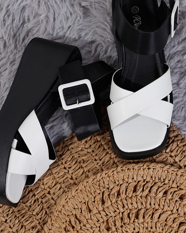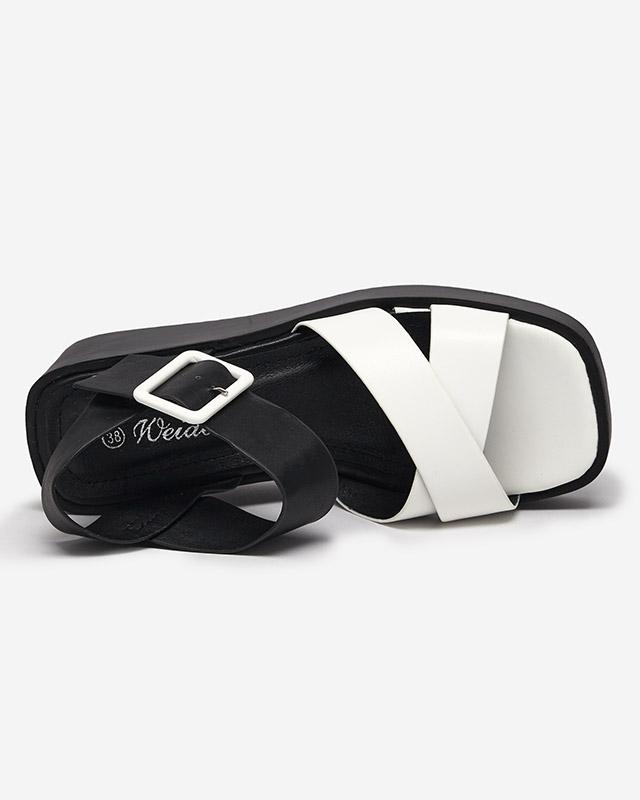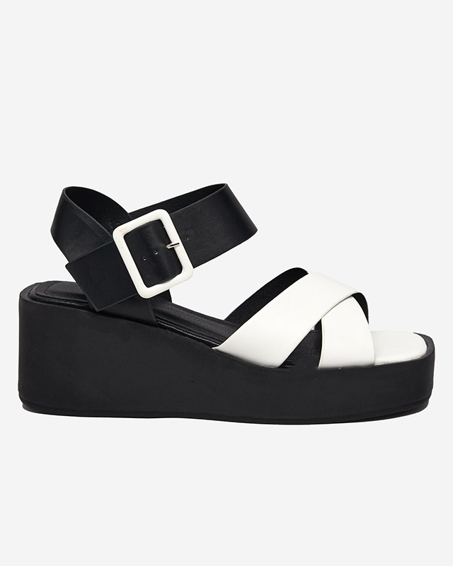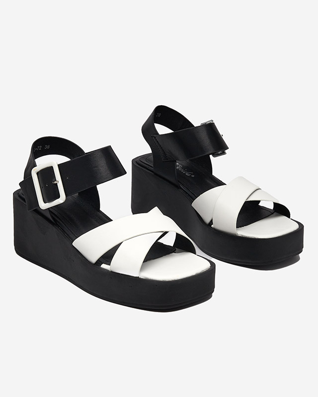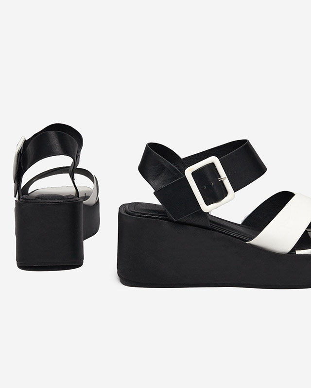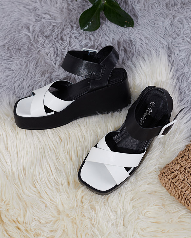 Біло-чорні жіночі босоніжки з екошкіри на танкетці Scozi