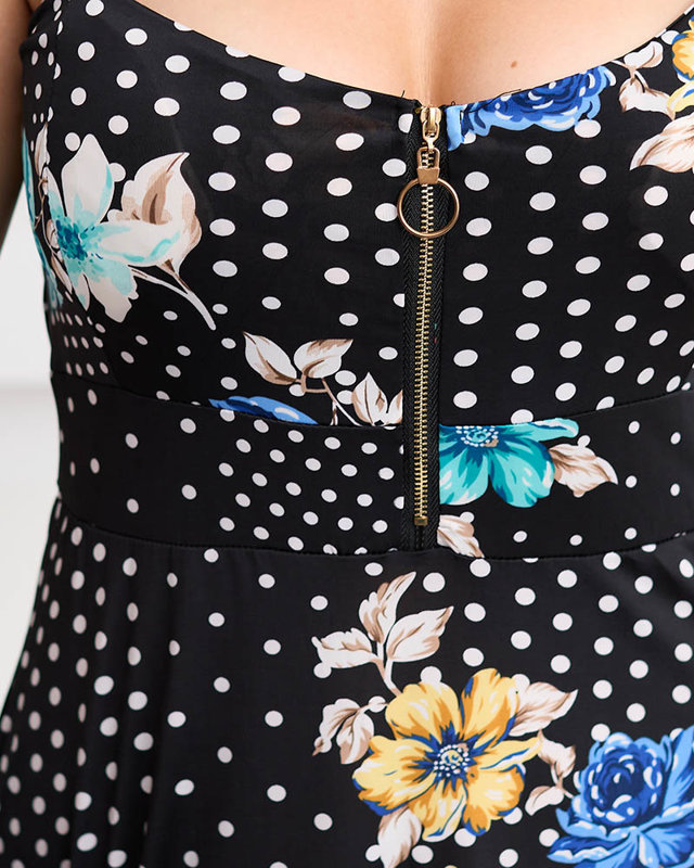 Жіноча чорна сукня в горошок і сині квіти- Одяг