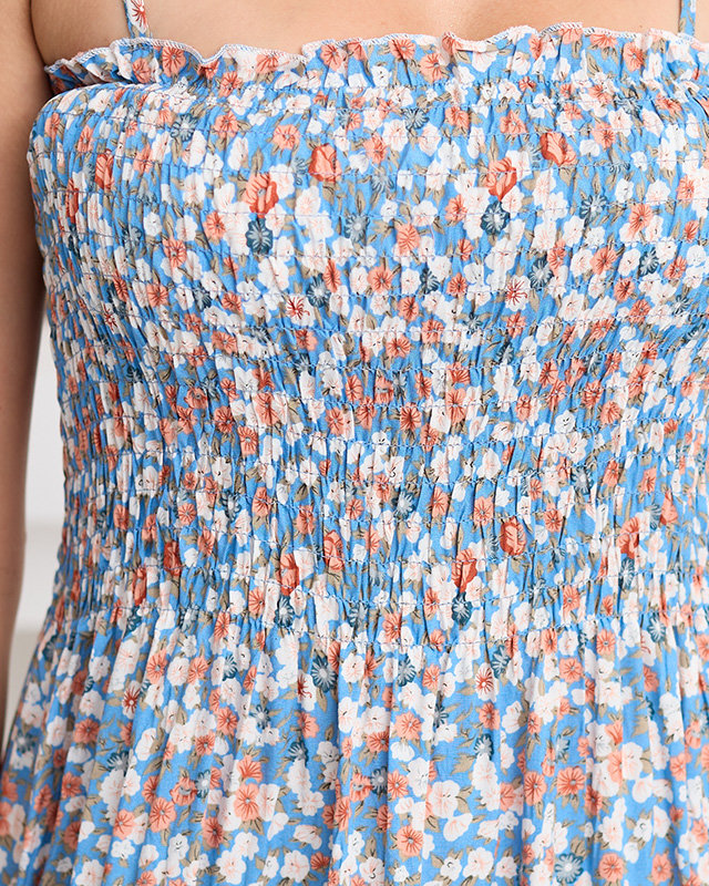 Жіноча блакитна квіткова міні-сукня на бретелях - Одяг