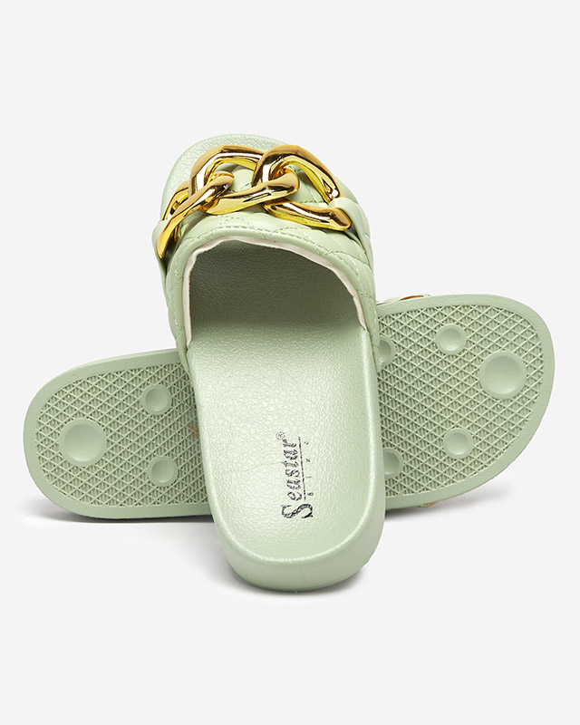 Жіночі зелені стьобані тапочки із золотим ланцюжком Eteris - Взуття