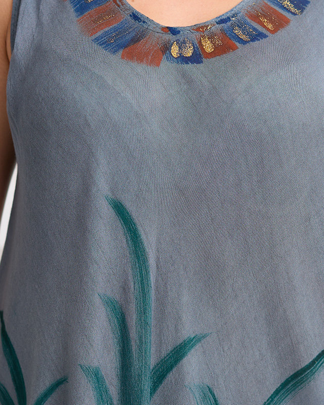 - Легка жіноча накидка типу сукні, виготовлена з м'якої та повітряної віскозної тканини. Модель має круглий виріз і розкльошений низ. ПРИМІТКА: Точність вимірювання (+/-) 1 см.