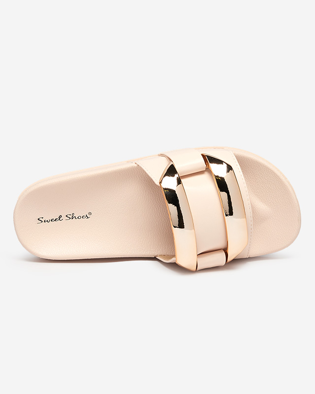 Жіночі бежеві тапочки з золотистим орнаментом Serina - Взуття