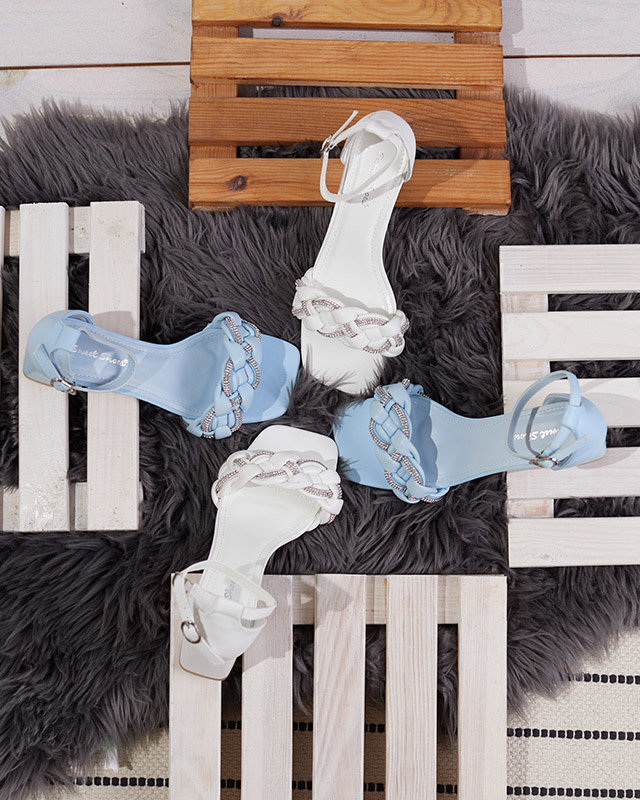 - Жіночі босоніжки на постінці з екологічної шкіри. Босоніжки мають плетену смужку з фіанітами, модель застібається на пряжку. Ідеально підходить для вечірнього виходу!