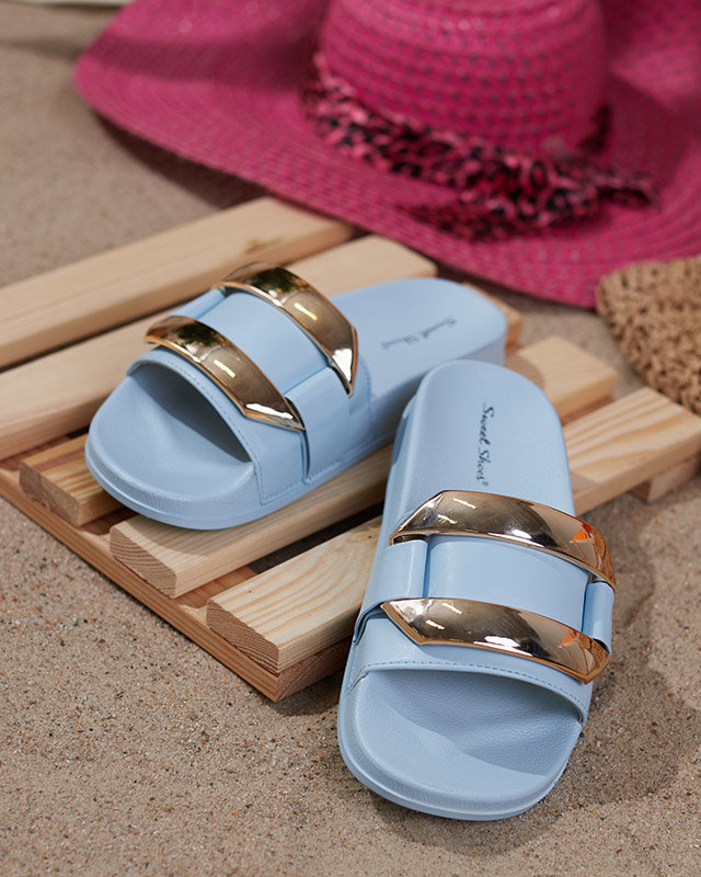 OUTLET Сині жіночі тапочки із золотистим орнаментом Serina - Взуття