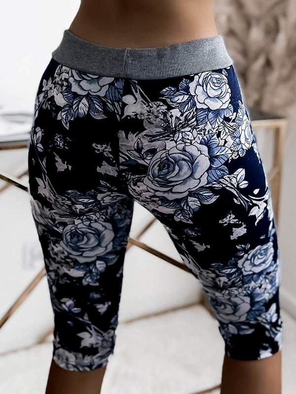 Жіночі шорти 3/4 в квіточку темно-синьо-синього кольору. PLUS SIZE - Одяг