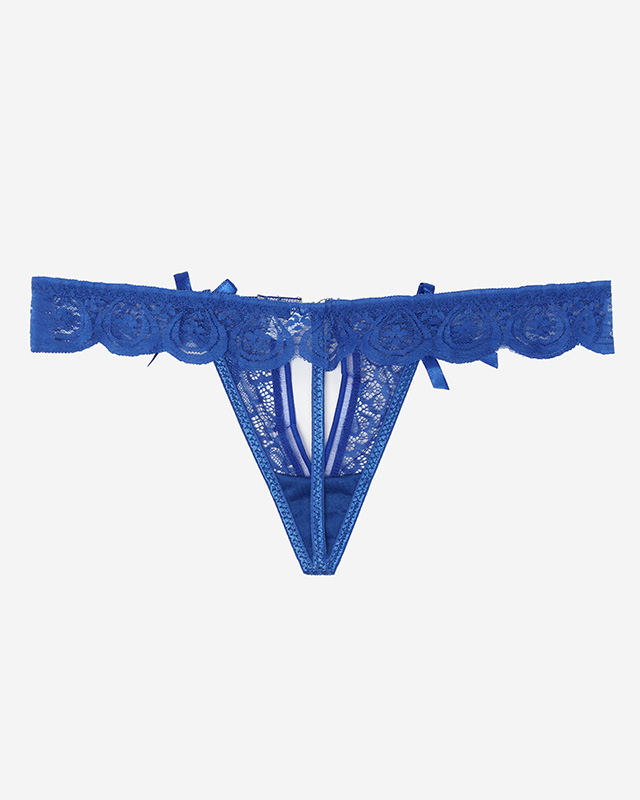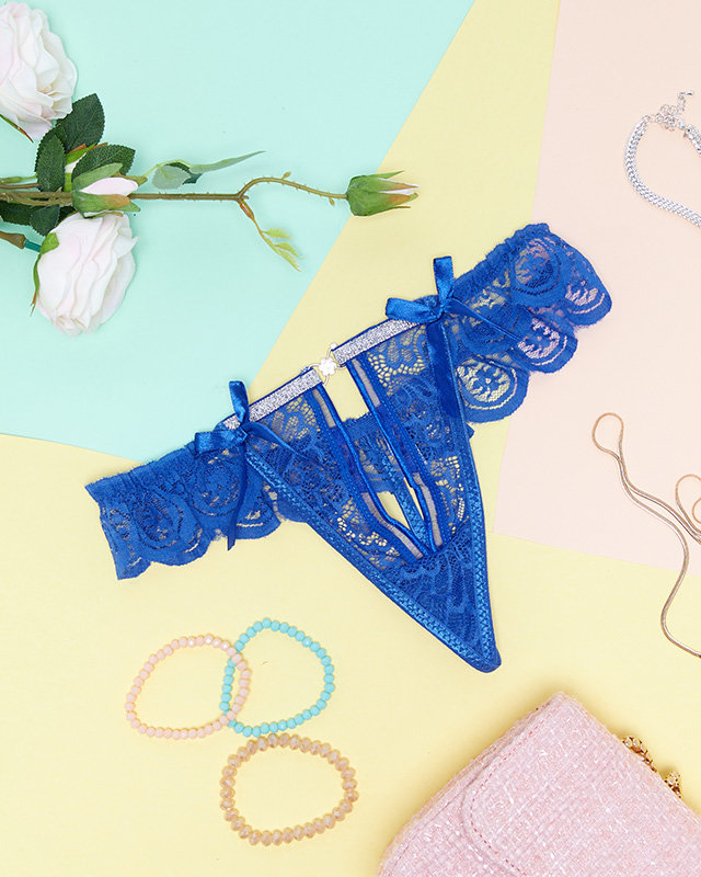 Жіночі темно-сині мереживні стринги з орнаментом - Білизна