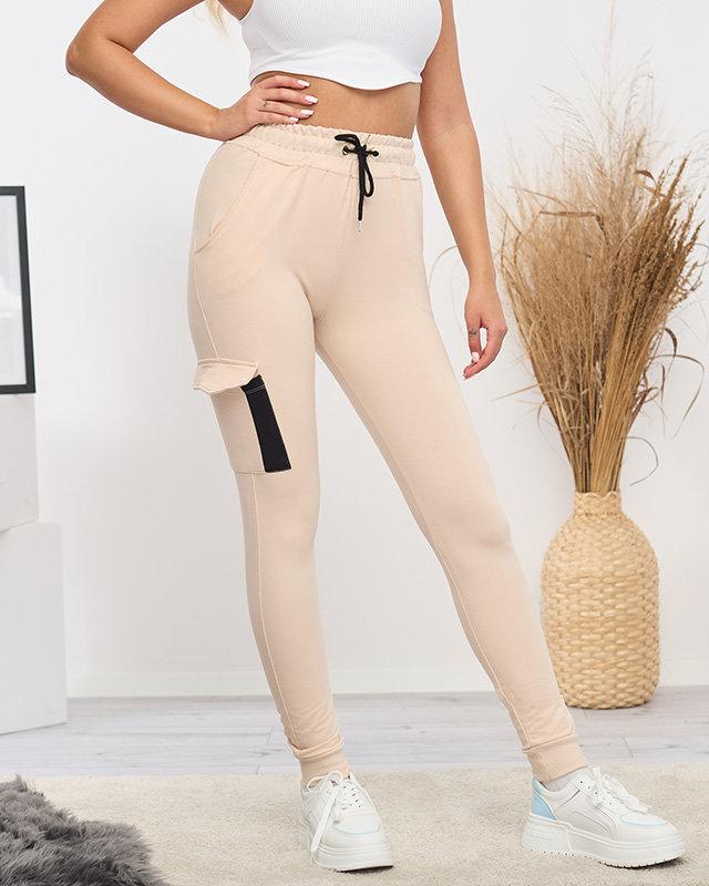 Жіночі бежеві бавовняні спортивні штани - Одяг