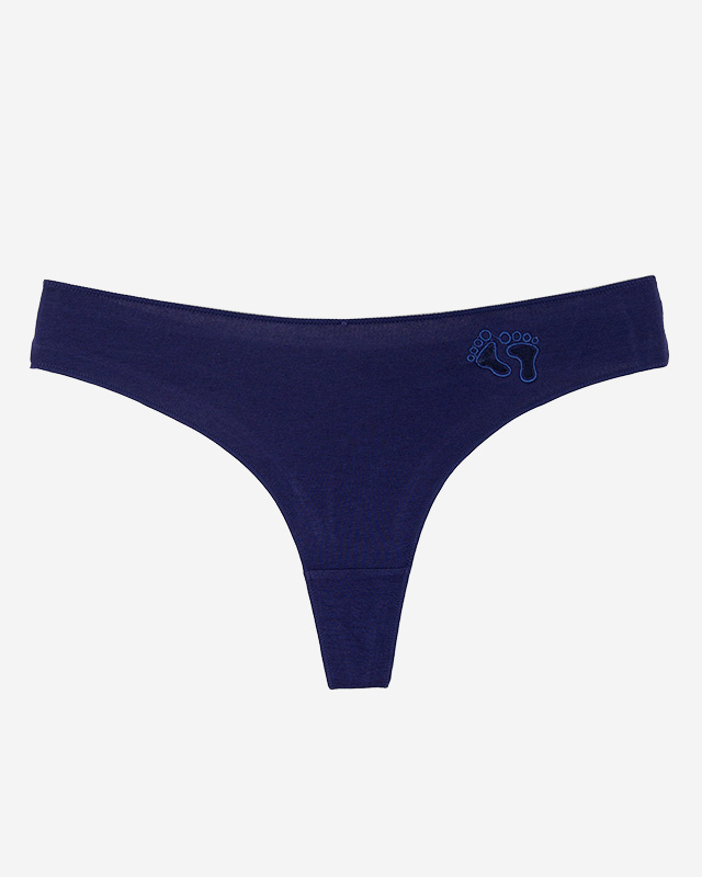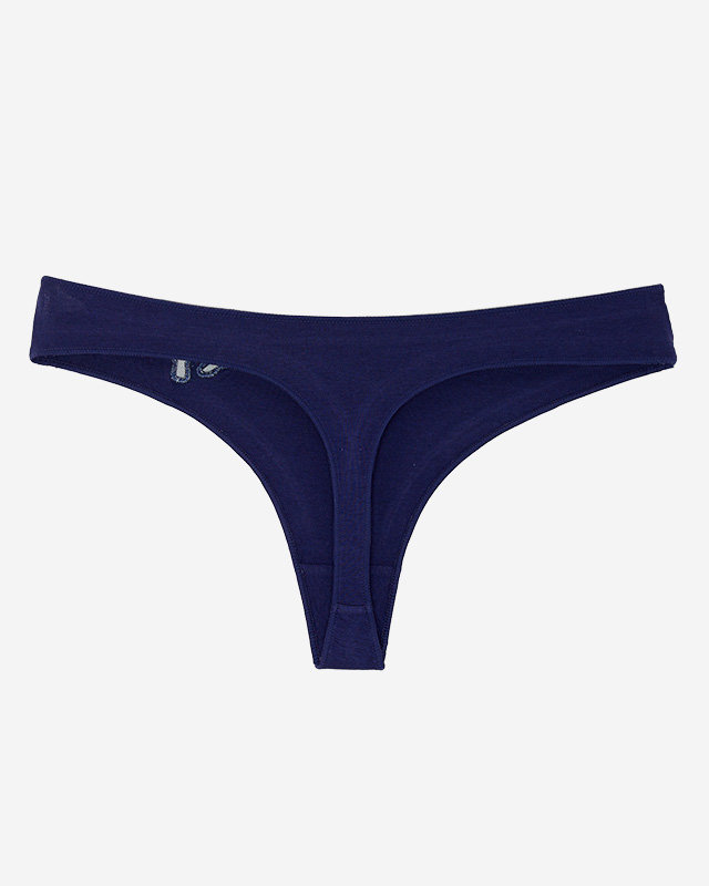 Жіночі темно-сині бавовняні стринги з вишивкою - Білизна