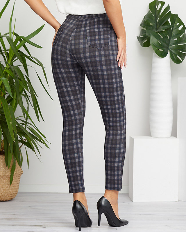 Темно-сірі жіночі штани в синю клітинку