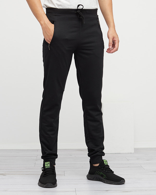 Чоловічі чорні спортивні штани з кишенями на блискавці - Одяг