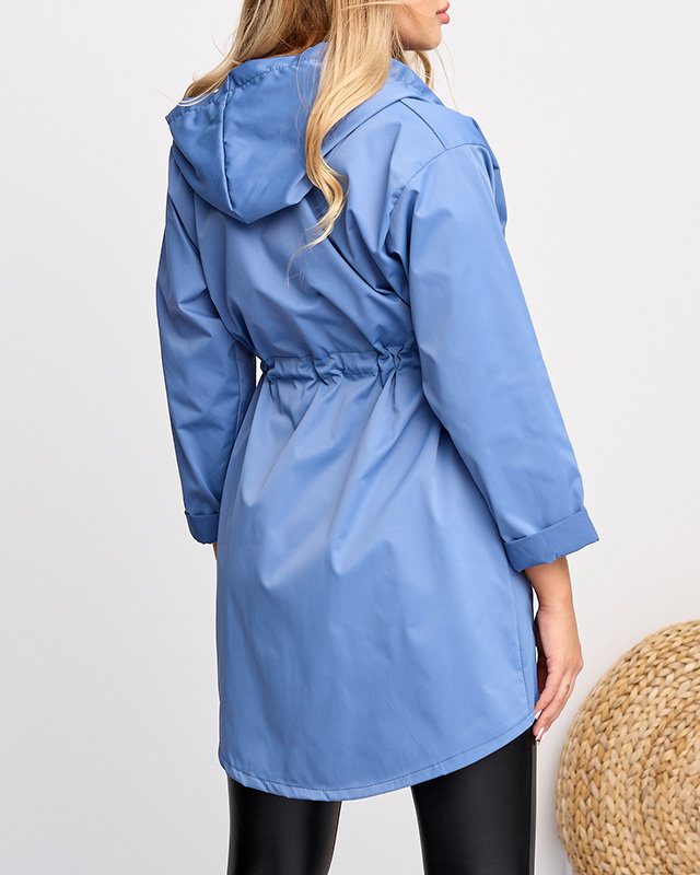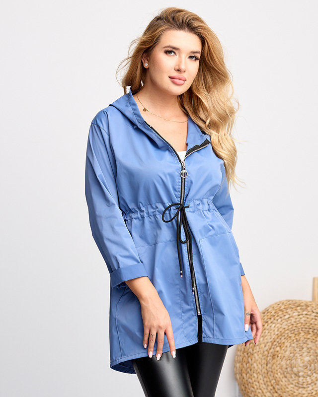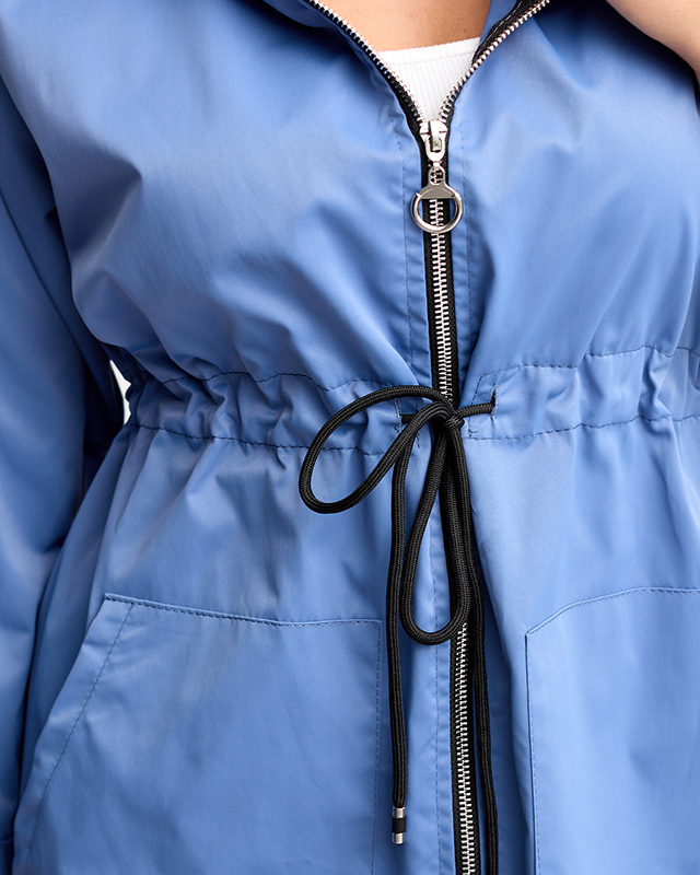 Жіноча синя довга куртка-вітровка на талії - одяг