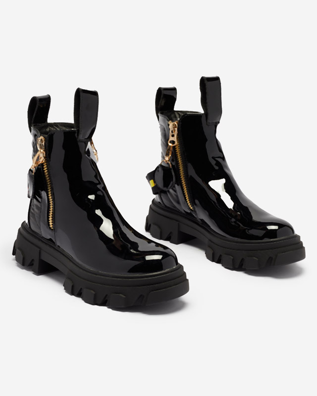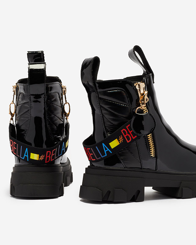 • Черевики на потовщеній підошві , мають делікатний утеплювач у вигляді хутра. Модель застібається на блискавку. Верх прикрашений знімним ремінцем. ЧОБОТИНКИ ЖІНОЧІ ЧОРНІ ЕКО ЛАКУВАНА ШКІРА OSALLU