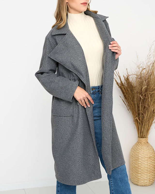 Пальто жіноче довге без застібок сірого кольору - Одяг