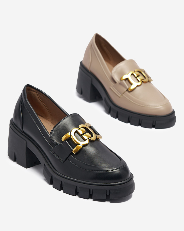 - Елегантні та стильні жіночі мокасини на гумовому каблуці. Пара повністю виконана з еко шкіри, на носі металева прикраса золотого кольору. Супер доповнення до Ваших повсякденних образів!