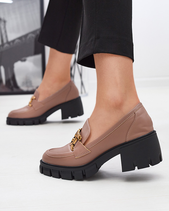 Жіночі коричневі мокасини на підборах з орнаментом Juister - Взуття