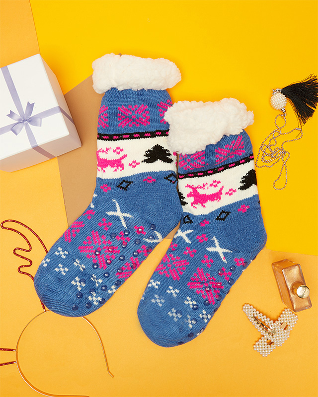 Темно-сині жіночі шкарпетки з новорічним візерунком - Нижня білизна