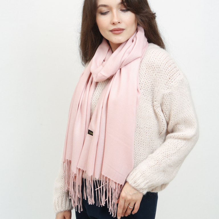 - Нестаріючий однотонний жіночий шарф з м'якої тканини, оздоблений китицями. Цей красивий шарф просто зобов'язаний бути у вашій шафі!