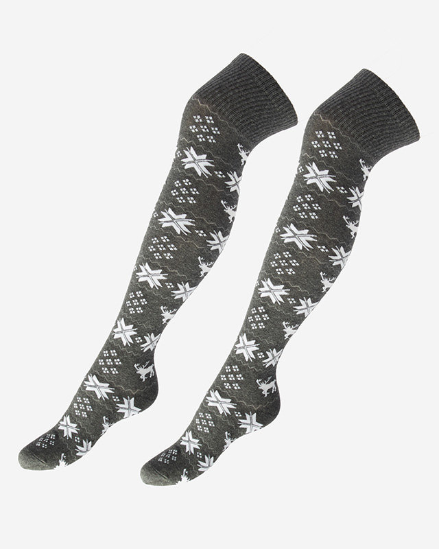Шкарпетки жіночі різдвяні вище коліна темно-сірі - Нижня білизна