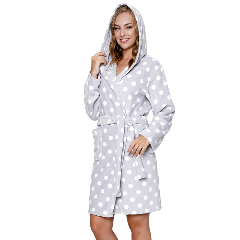 М'який сірий жіночий халат в горошок - Одяг