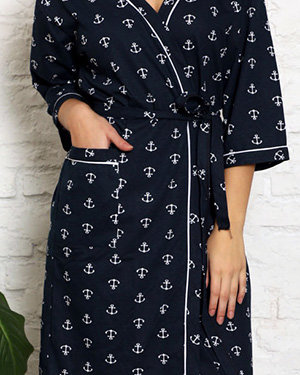 Халат жіночий бавовняний темно-синій з сердечками - Одяг