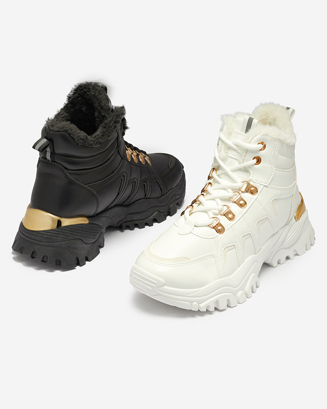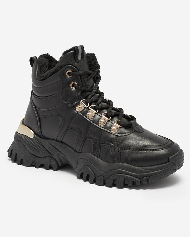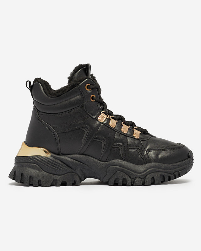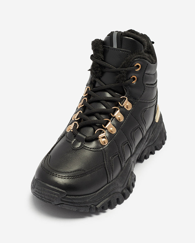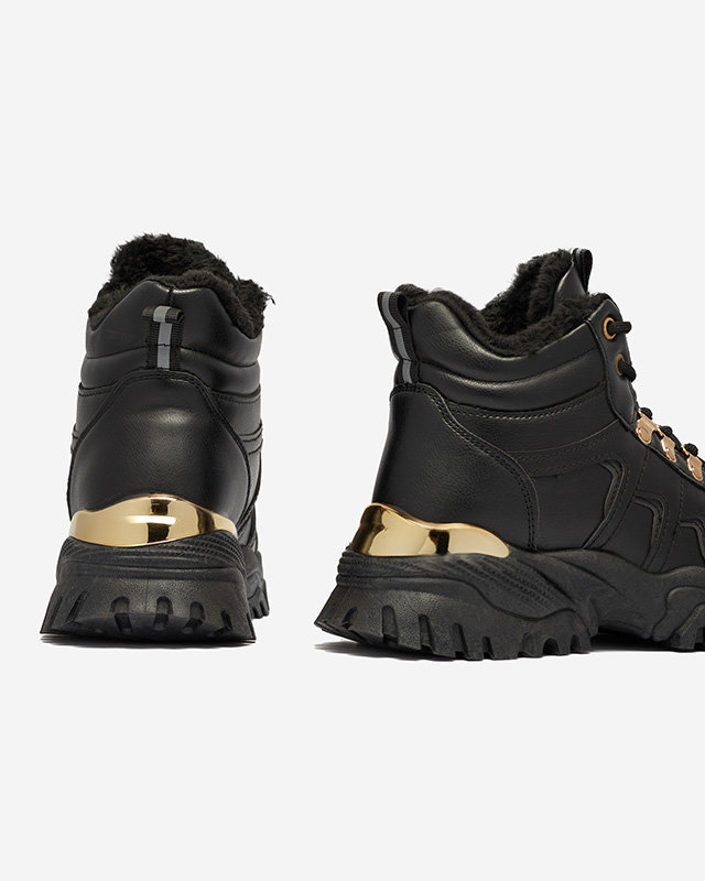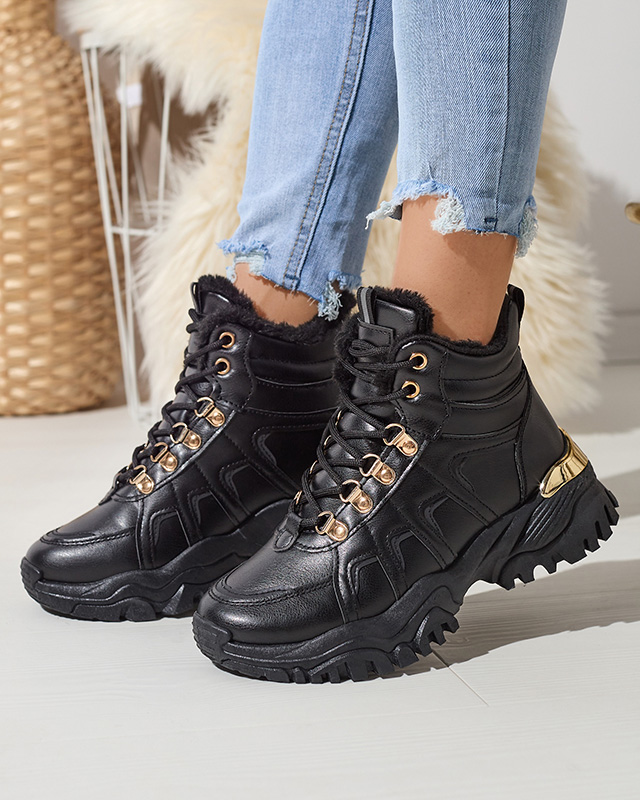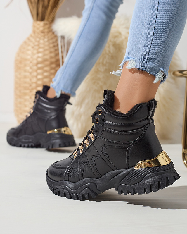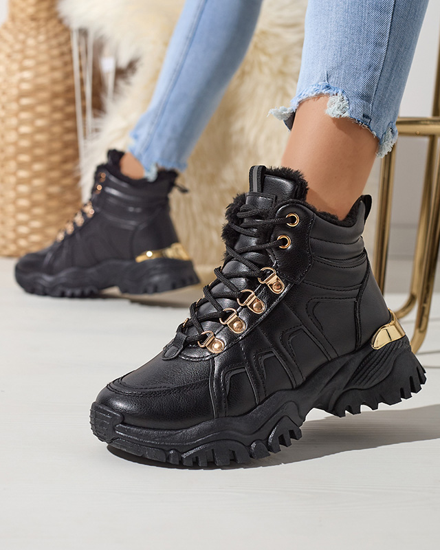 - Жіночі черевики на суцільній підошві з верхом з екошкіри, внутрішня частина підбита хутром. Модель прикрашена шнурівкою та золотистими елементами. Ідеальний варіант для зими! ЧОРНІ ЖІНОЧІ УТЕПЛЕНІ СНІГОСТУПИ VETORR