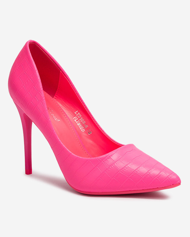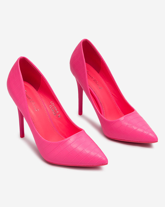 Неоново-рожеві жіночі туфлі-човники на шпильці з тисненням Asota - Взуття