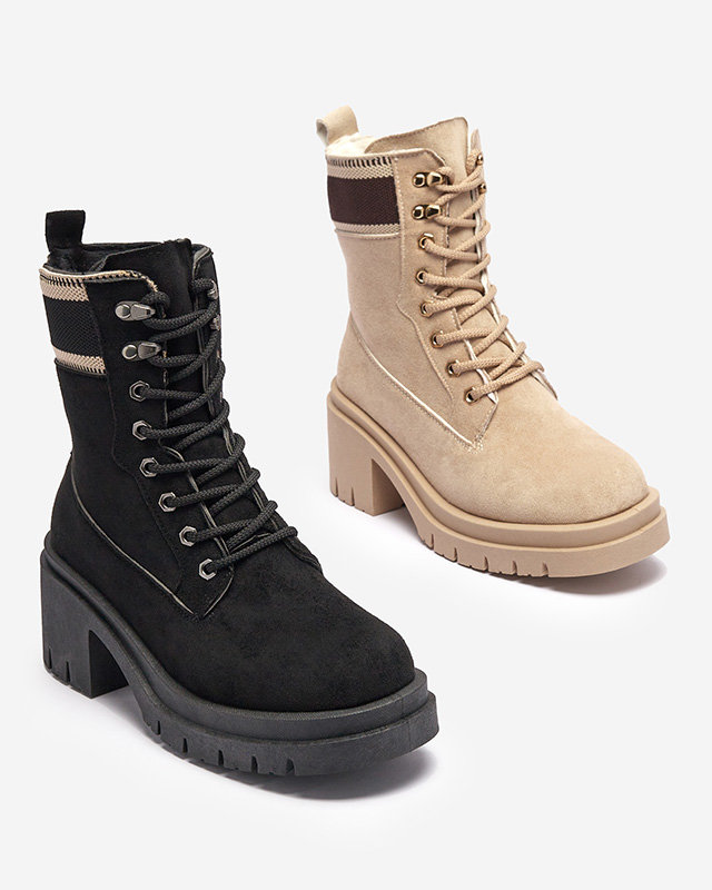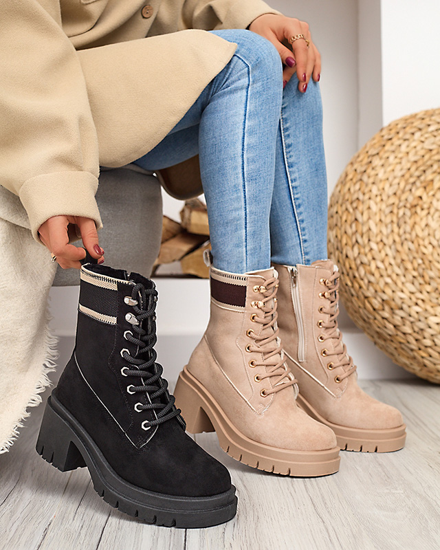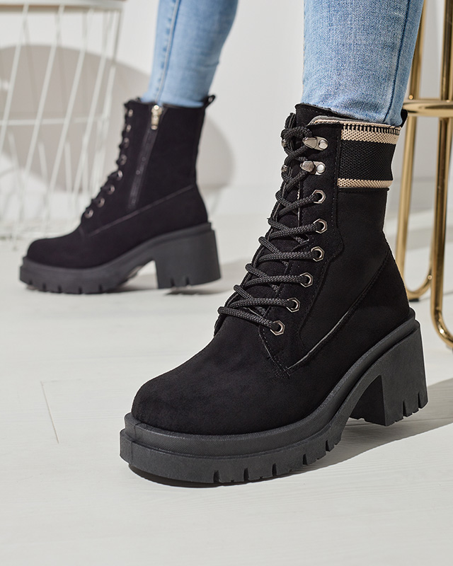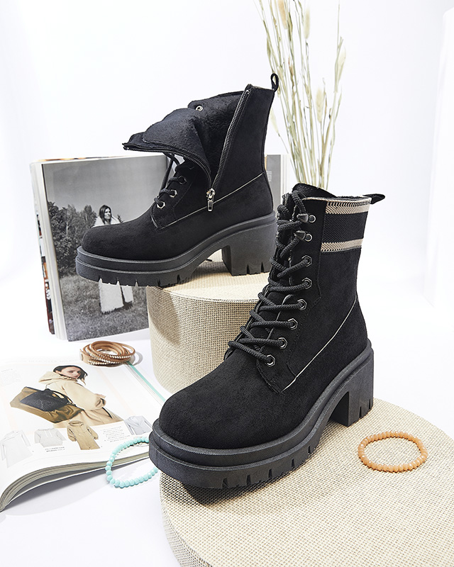 - М'які утеплені черевики на шпильці, виготовлені із замшевої екологічної шкіри. Усередині підбиті м'яким хутром. Модель на блискавці, додатково оснащена шнурками. ЧОРНІ УТЕПЛЕНІ ЧЕРЕВИКИ TRAPPERS KOIDOO