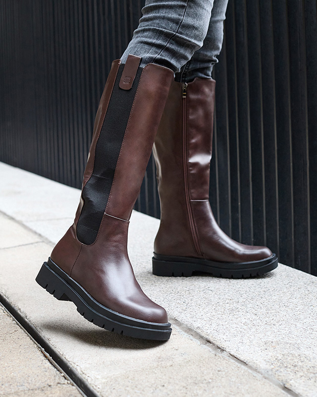 Жіночі напівчоботи з екошкіри коричневого кольору Orikas - Взуття
