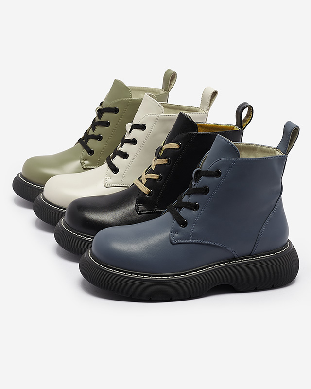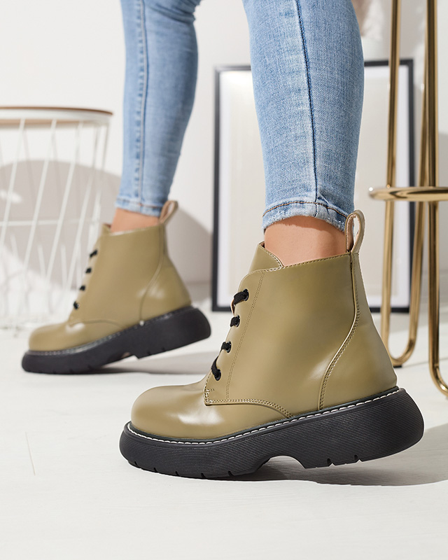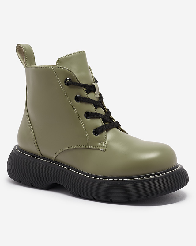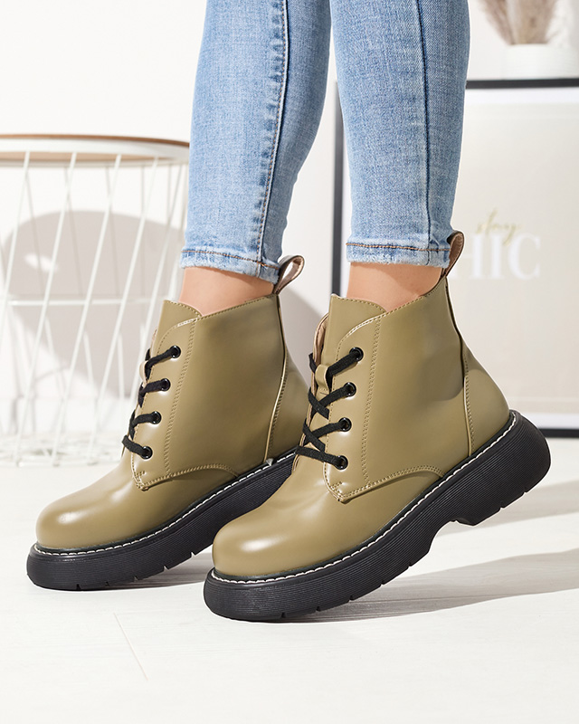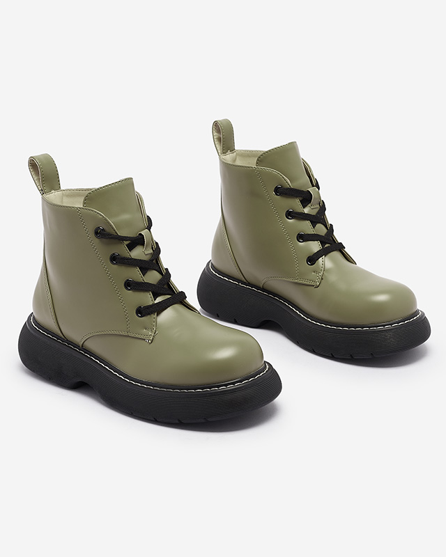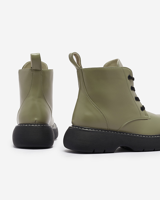 Зелені жіночі черевики з екошкіри з жовтими шнурками Getysa - Взуття