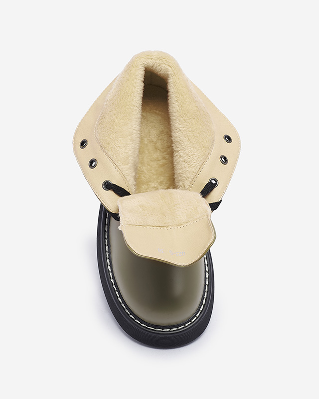 - Мега модні жіночі черевики з екошкіри. Чоботи на шнурівці та мають потовщену гумову підошву. Всередині утеплені м'яким хутром. Ідеальний варіант для осені! ЗЕЛЕНІ УТЕПЛЕНІ ЧОБІТКИ GETYSA