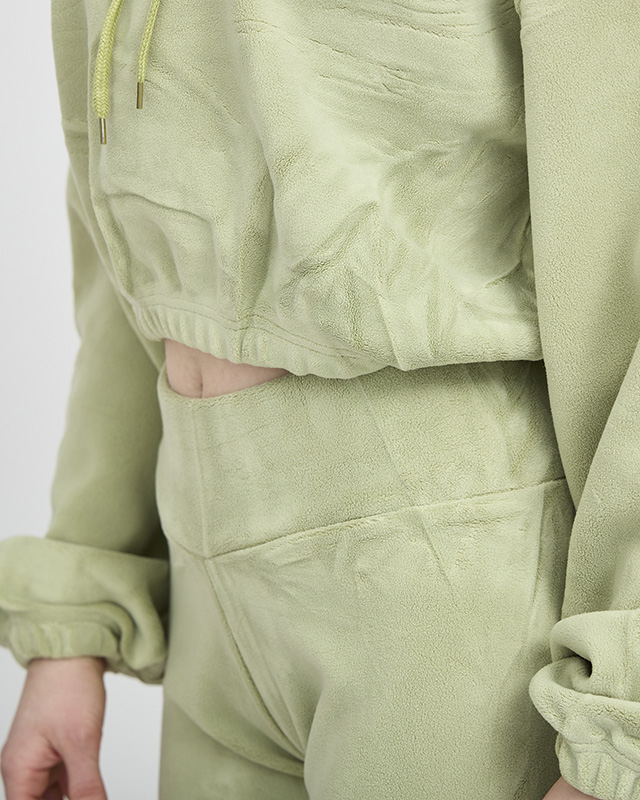 - Жіночий спортивний комплект: світшот і штани, виконаний з матеріалу а'ля фліс. Штани типу легінси на резинці по талії та внизу штанин, кофта коротка з капюшоном і штанинами та стрейчевою резинкою внизу. ПРИМІТКА: Похибка вимірювання (+/-) 1 см.