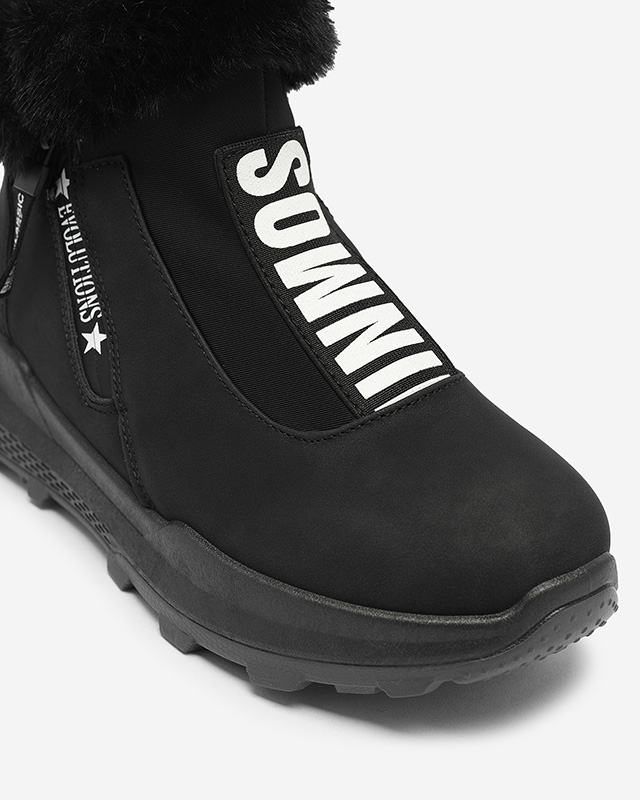- Жіночі ботильйони виготовлені з екологічної шкіри, внутрішня частина утеплена м'яким хутром. Спереду халяви еластична вставка з декоративним написом, взуття застібається на блискавку. ЧОРНІ БОТИЛЬЙОНИ ЖІНОЧІ УТЕПЛЕНІ SCHERR