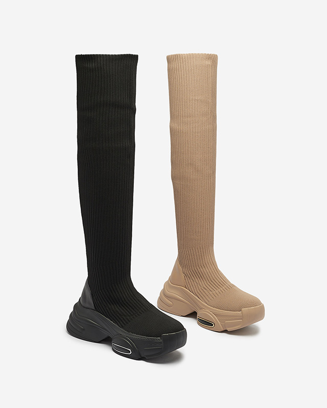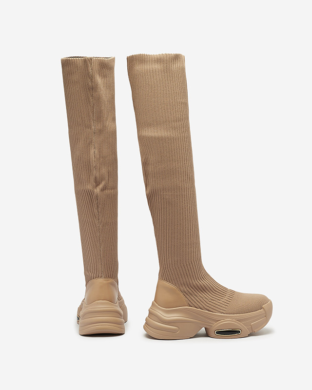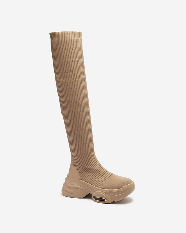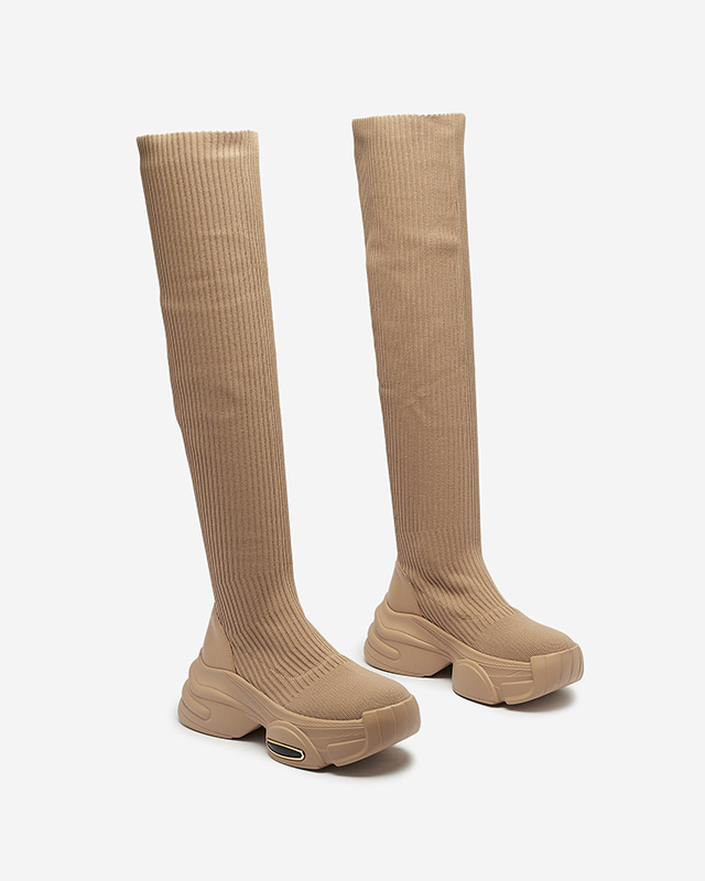 Жіночі чоботи-сліпони вище коліна кольору хакі Georis - Взуття