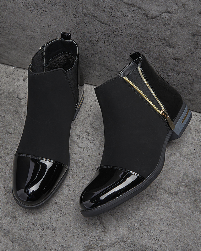 - Чорні жіночі черевики з комбінації лакованої шкіри та еконубуку. Модель сліпони має еластичні вставки з боків і внутрішню частину, утеплену хутром. ЧОРНІ УТЕПЛЕНІ ЧОБОТИ ЧЕРЕВИКИ ЖІНОЧІ ROPENIA