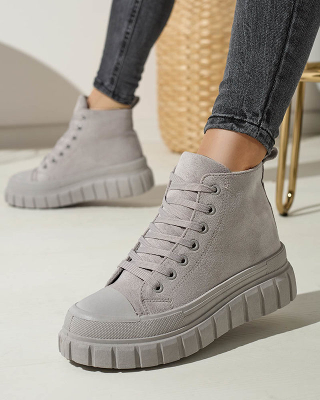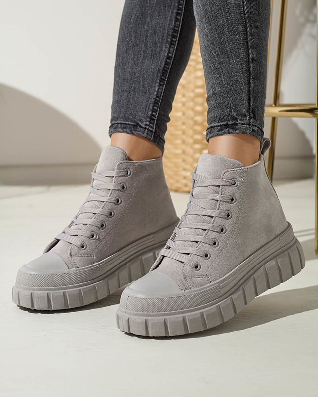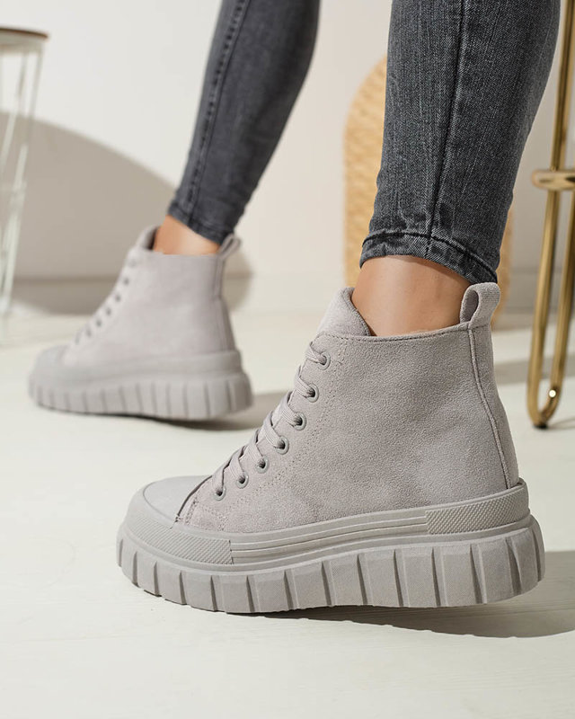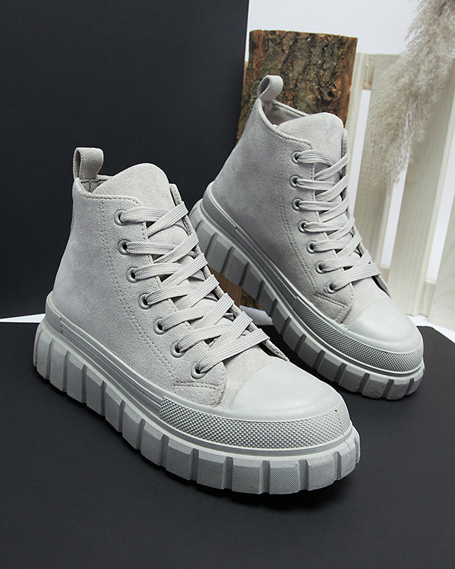Світло-сірі жіночі спортивні черевики на шнурівці а-ля кросівки Netara - Взуття